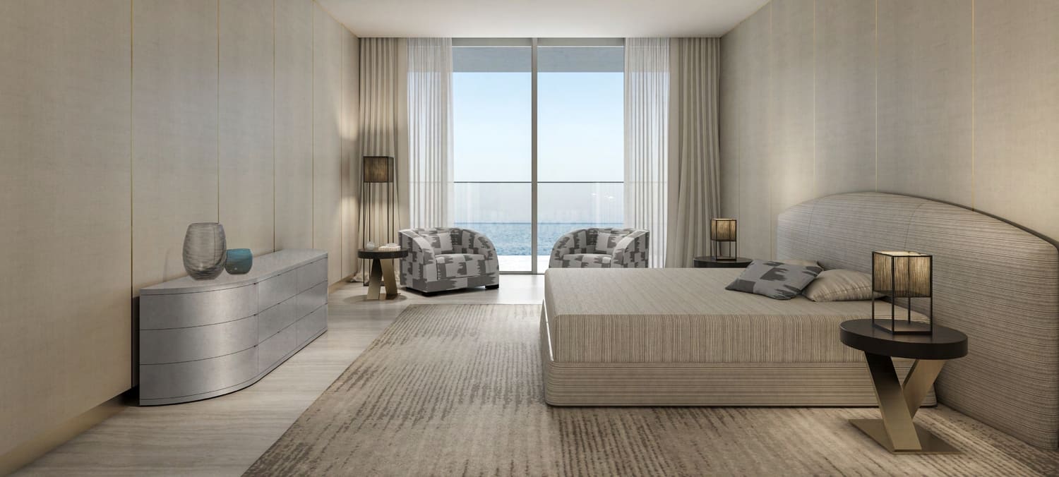 Armani Beach Residences auf Palm Jumeirah bringt erneut zwei der berühmtesten Kulturschaffenden der Welt zusammen: Giorgio Armani und Tadao Ando. In ihrer über zwei Jahrzehnte währenden Partnerschaft verbindet Giorgio Armani und Tadao Ando gegenseitiger Respekt und Bewunderung. Armani Beach Residences auf Palm Jumeirah wurde vom Meisterentwickler Arada zusammengebracht und ist das erste und einzige Mal, dass diese Meister ihres Fachs bei einem Wohnangebot zusammengearbeitet haben. Armani Beach Residences auf Palm Jumeirah setzt einen neuen Standard für ultraluxuriöses Wohnen und liegt an den Ufern der berühmten künstlichen Inseln Dubais, einem der exklusivsten Wohnviertel der Welt. Armani Beach Residences auf Palm Jumeirah bietet einen atemberaubenden Panoramablick auf den Arabischen Golf sowie die berühmte Skyline von Dubai und ist so konzipiert, dass eine Harmonie zwischen Architektur, umgebender Meereslandschaft und den Sinnen erreicht wird. Der großartige, erhöhte Eingangsbereich gibt den Ton an und bietet den Bewohnern extravagante Meerblicke aus verschiedenen Winkeln. Im gesamten Gebäude verstärkt das Zusammenspiel von Licht und Schatten eine Reihe stilvoller Designelemente, darunter den überhängenden Bogen und die vielen Wasserspiele und Pools. Neben seiner beispielhaften Architektur und der Lage am Meer zeichnen sich die Armani Beach Residences auf Palm Jumeirah durch eine Reihe einzigartiger Annehmlichkeiten aus, die den Bewohnern einen wahrhaft ultraluxuriösen Lebensstil ermöglichen. Diese Sammlung hochwertiger Einrichtungen umfasst ein erstklassiges Spa nur für Bewohner, einen Veranstaltungsraum, eine Zigarrenlounge und einen angelegten Terrassenbereich sowie einen Privatstrand. Die exquisiten Innenräume dieser Einrichtungen verschmelzen mit limitierten Stücken, die individuell von Giorgio Armani selbst entworfen wurden, um einen einzigartigen Stil mit einer unverwechselbaren und anspruchsvollen Ästhetik zu schaffen.