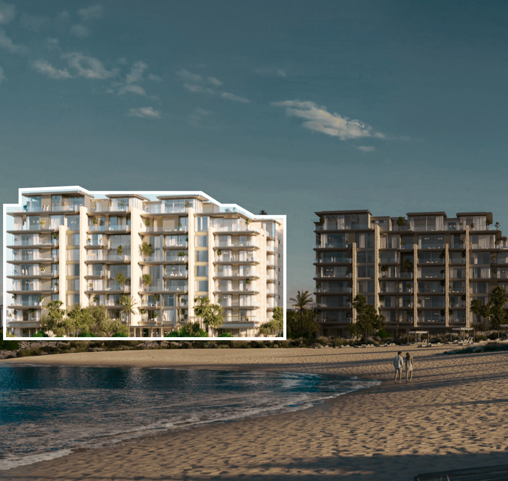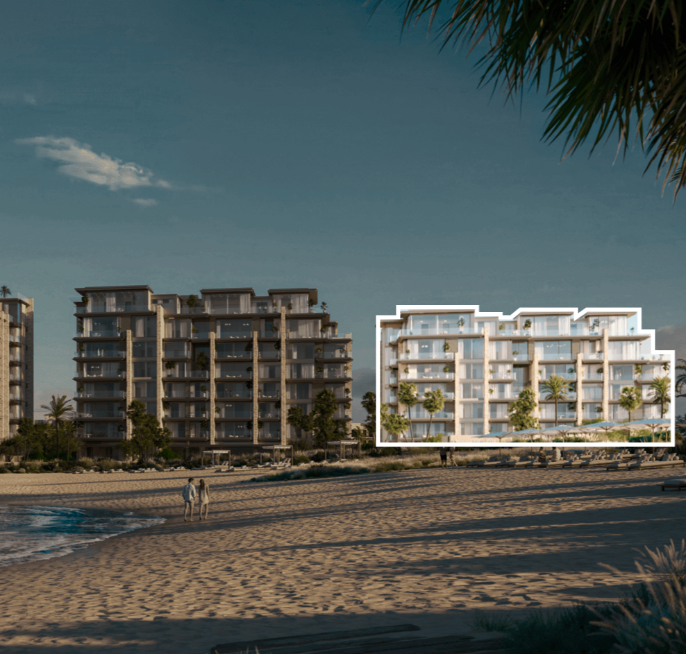 Neuf immeubles longent 500 m de plage privée, dévoilant des panoramas ouverts sur le Golfe et la skyline. Pierre naturelle, boiseries, hauteurs sous plafond jusqu’à 6 m, plans fluides et terrasses généreuses—avec piscines privées sur certaines typologies—offrent la sensation d’une villa suspendue entre ciel et mer.